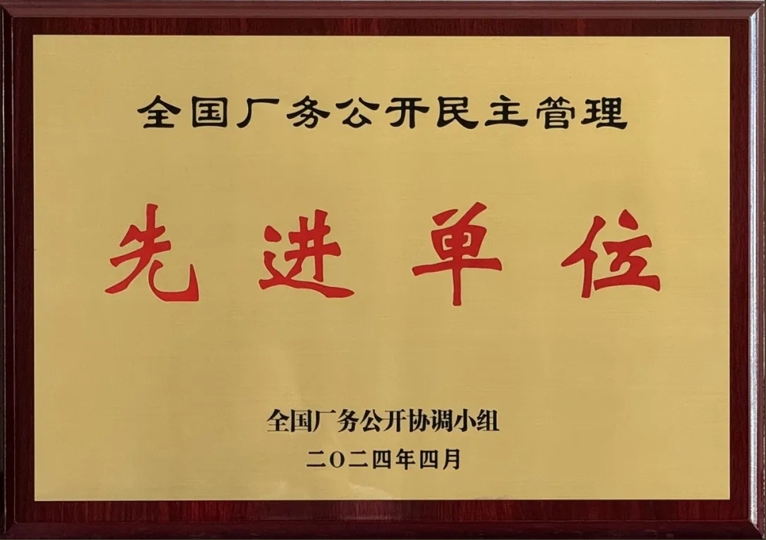 财神争霸药业集团获得了“2021-2023年全国厂务公开民主管理先进单位”的表彰